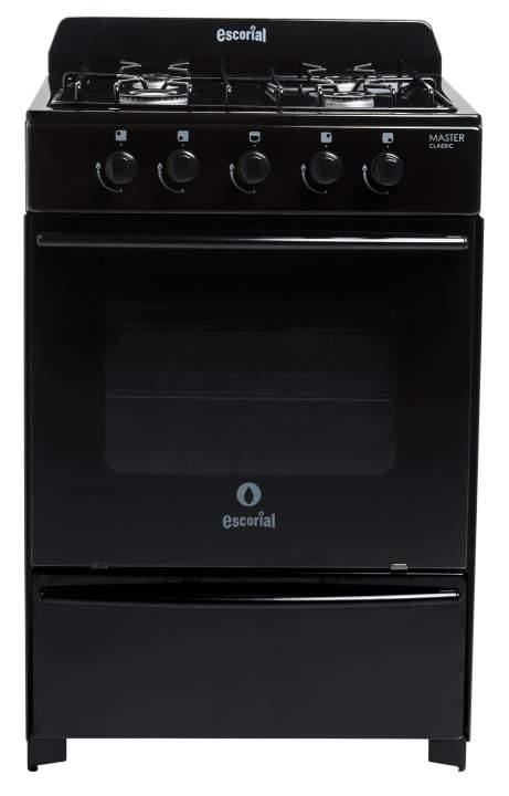 Acero inoxidable con tapa de horno de vidrio negro y laterales negros.