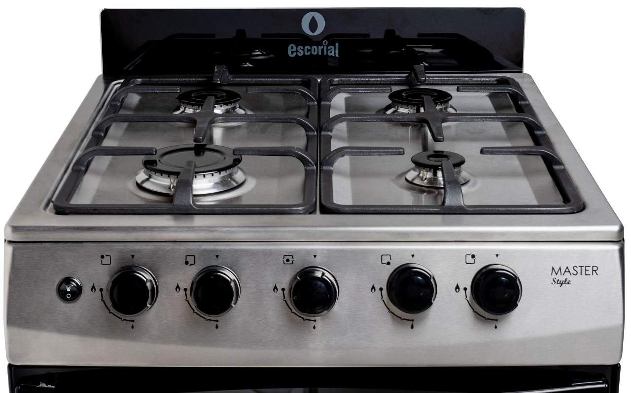 Quemadores de aluminio pulidos con tapa de acero esmaltada.
